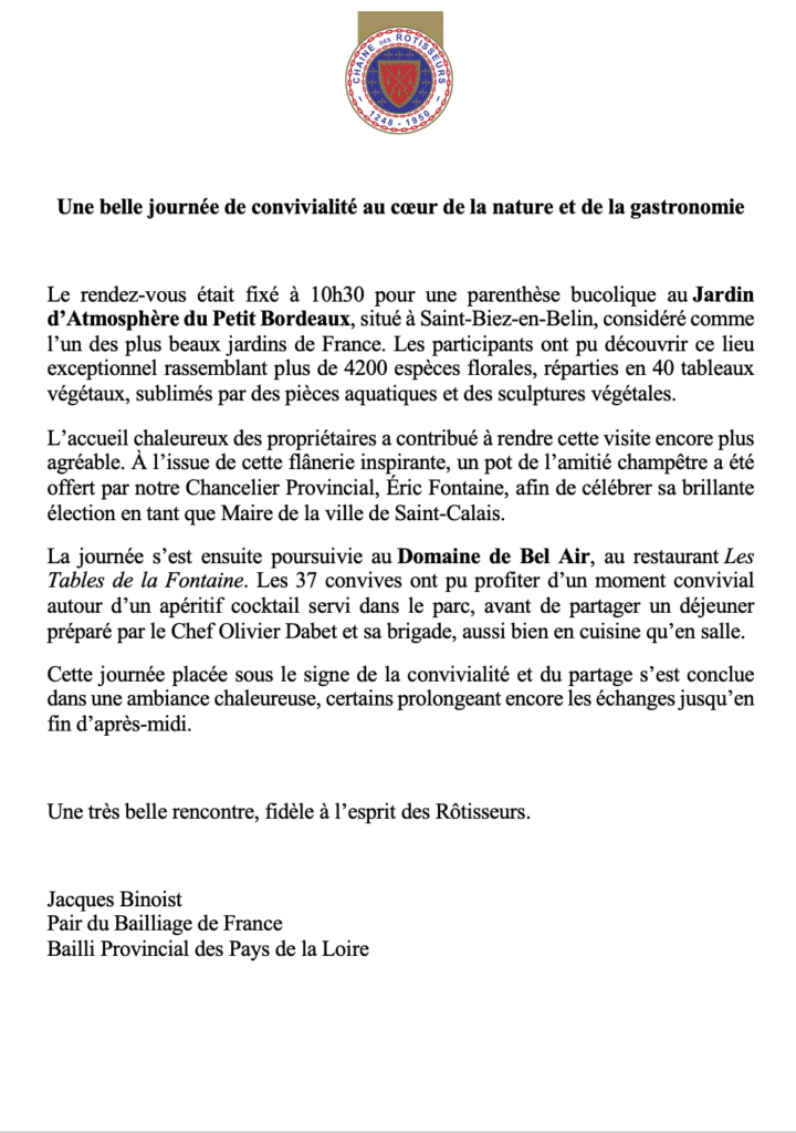 Une belle journée de convivialité au cœur de la nature et de la gastronomie 14 avril 2026 / Pays de Loire / Par Natalia Krassikova